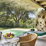 La struttura dispone di 22 camere che comprendono un patio. Offrono inoltre un televisore con canali satellitari e servizi per la preparazione di tè/caffè. Sono dotate di uno scrittoio e un camino in pietra. Sono dotate di una cabina doccia, nonché di numerosi servizi, tra cui asciugacapelli e teli da bagno. Gli ospiti possono anche godere di una vista sul patio.